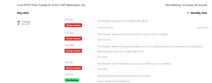 Deși era programată pentru ora 13.30, ora locală, întâlnirea a fost amânată o jumătate de oră. Klaus Iohannis va susține declarații de presă, după întrevederea cu președintele SUA, în jurul orei 22.00.