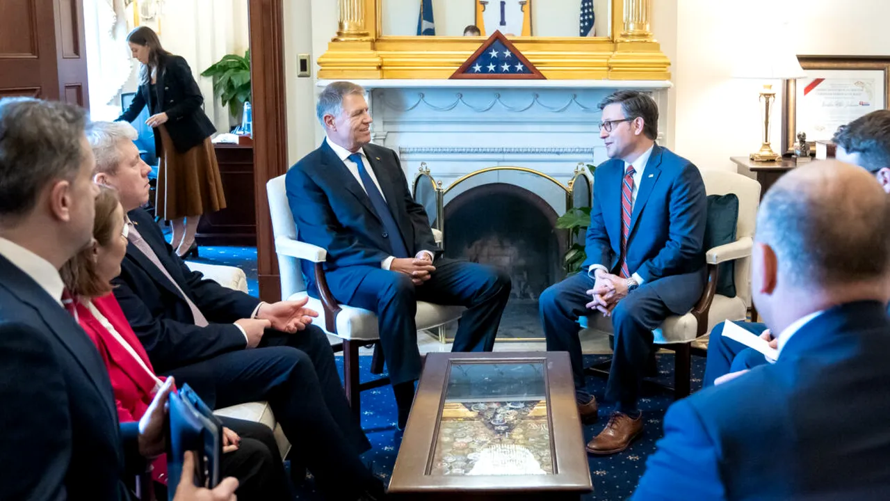 Ultimul eveniment pe agenda președintelui Klaus Iohannis în Statele Unite a fost întâlnirea cu liderul Camerei Reprezentanților din cadrul Congresului, Mike Johnson.