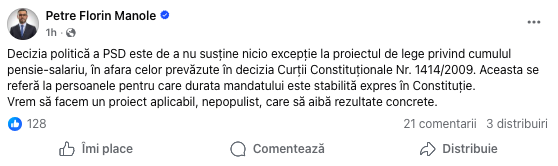 S-au anunțat tensiuni în coaliție, după anunțul făcut marți de PSD, prin vocea lui Florin Manole. Social-democrații nu susțin nicio excepție la proiectul de lege privind cumulul pensie-salariu, în afara celor decise de CCR.