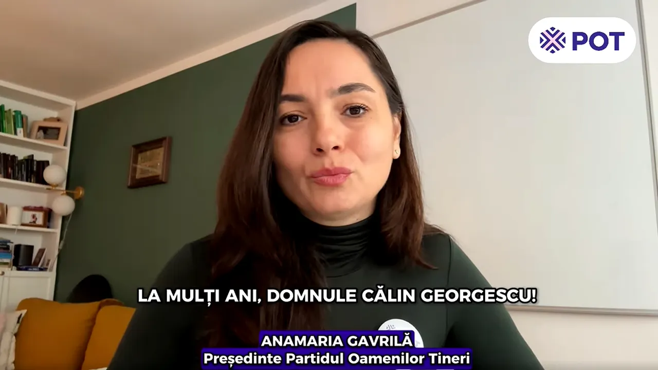 Anamaria Gavrilă, liderul Partidului Oamenilor Tineri (POT), a transmis miercuri un mesaj video cu ocazia aniversării lui Călin Georgescu, fost candidat la Președinție. Ea i-a urat sănătate și putere „în misiunea pe care i-a dat-o Dumnezeu”, dar a anunțat că nu va fi prezentă la mitingul organizat în Piața Constituției de susținătorii acestuia.