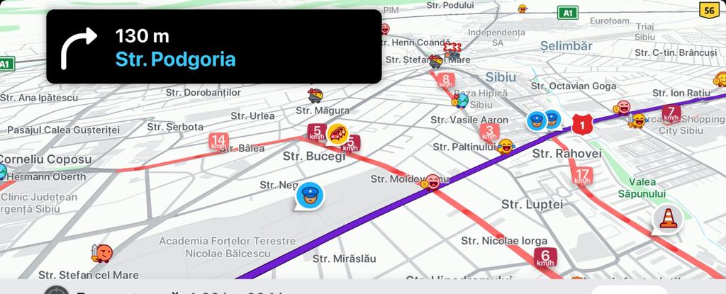 Traficul din Sibiu la ora 15:30 / Sursa: Waze