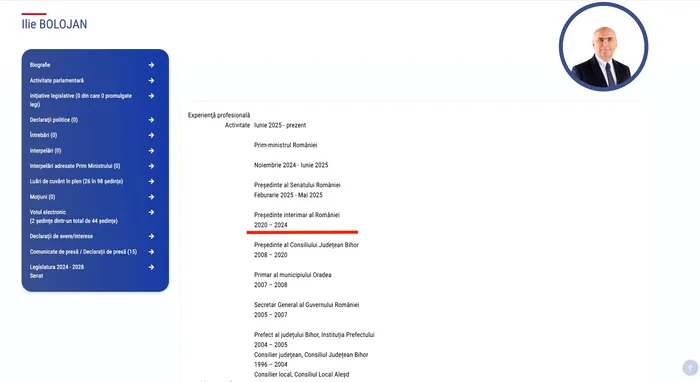 Premierul Ilie Bolojan a fost președinte interimar în perioada 12 februarie 2025 – 26 mai 2025. Practic, potrivit documentului public, Bolojan ar fi condus România în paralel cu Klaus Iohannis, timp de patru ani, lucru care, evident, nu are legătură cu realitatea. În CV însă, intervalul trecut este identic cu cel al celui de-al doilea mandat al lui Iohannis.