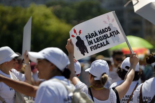 Contabili, economiști și antreprenori s-au adunat luni dimineață în fața Palatului Victoriei pentru a atrage atenția asupra a ceea ce ei numesc „teroare fiscală” și măsuri adoptate fără consultare publică, care au un impact major asupra întregii societăți. Protestul organizat sub numele „Fără haos în legislația fiscală”, a început la ora 8.30.