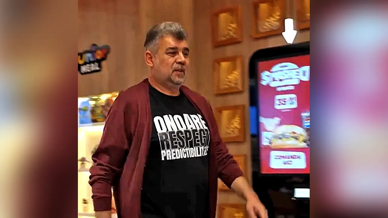 Aflat în vizită în țară, premierul Marcel Ciolacu, provocat de un antreprenor român care și-a deschis un fast-food, a mers spre suprinderea românului să testeze produsele FryDay, dar îmbrăcat într-un tricou cu mesajul: ONOARE, RESPECT, PREDICTIBILITATE.