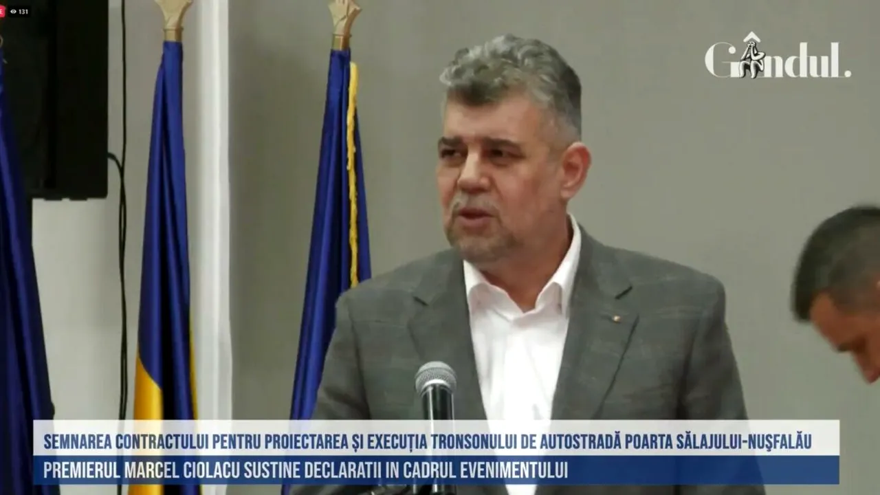 Șeful Executivului a participat joi, alături de ministrul Transporturilor, Sorin Grindeanu, la semnarea contractului pentru proiectarea și execuția tronsonului de autostradă Poarta Sălajului-Nuşfalău (Secțiunea Poarta Sălajului-Zalău și secțiunea Zalău-Nuşfalău), care include tunelul Meseș, cel mai mare contract al CNAIR.
