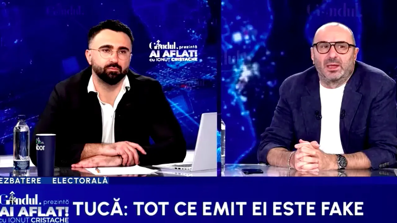„Deci, băi, nu faci altceva de dimineața până seara decât să demontezi toate aberațiile cu care vin ăștia. Dar ia uite, citește pe orice site citește o chestiune apropo de acuzațiile pe care ei le aduc lui Simion, lui AUR, lui Călin Georgescu orice acuzație, să vezi că se demontează, o demontăm noi, în 15 secunde. Spune-mi și mie una singură care e adevărată.”, a mai menționat Marius Tucă.