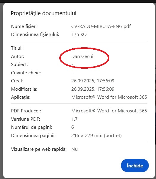 Acesta este, de fapt, soțul Ioanei Răduca, consiliera lui Miruță. Problema flagrantă este că Dan Gecui nu are nicio funcție oficială în Guvern, care să-i permită să se ocupe de redactarea CV-ului unui demnitar. Singura legătura a lui Gecui cu Ministerul Economiei este soția sa, Ioana Răduca.