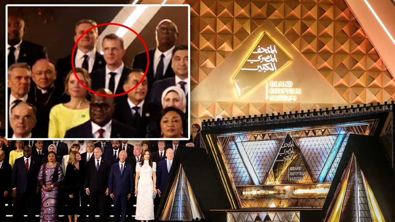 Ministrul Apărării, Ionuț Moșteanu, surprins la inaugurarea- spectacol a Marelui Muzeu al Egiptului. Oficialul român pare stingher printre regi, regine, prinți și președinți