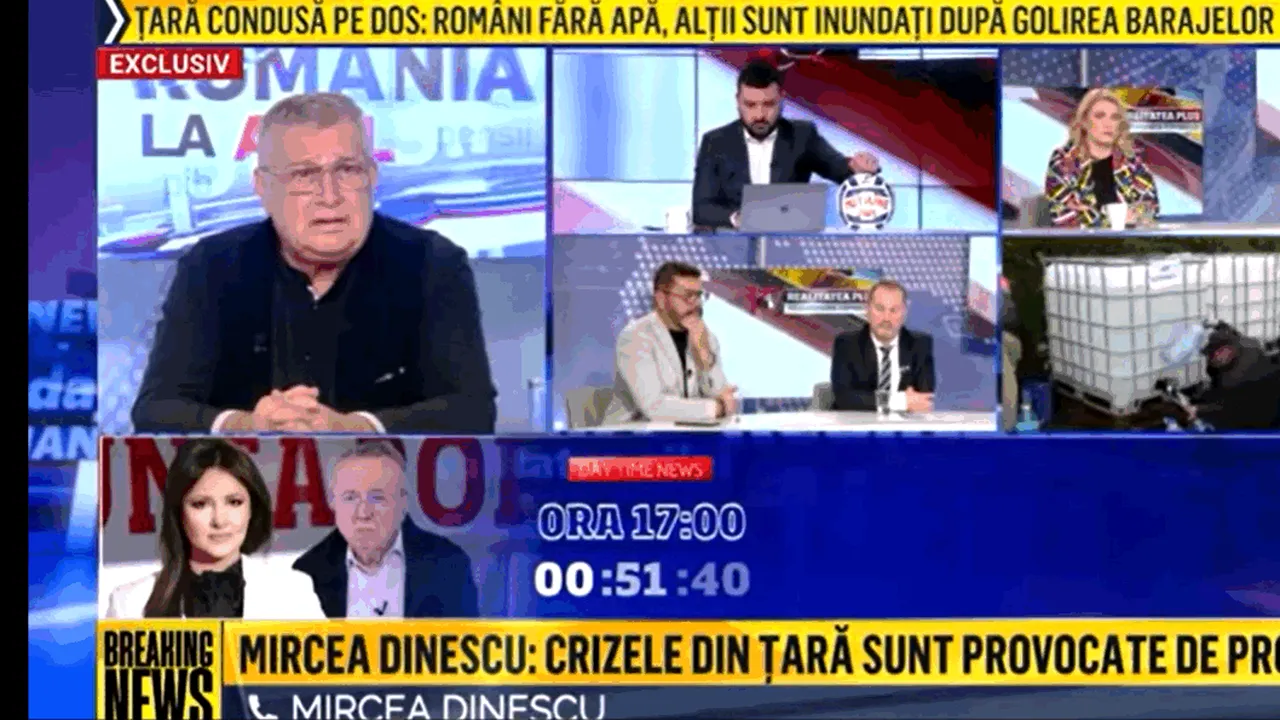 „Am ajuns după 30 de ani de capitalism să ne plângem de apă pentru că am sentimentul că acești domni care conduc acum România sunt propagandiștii preasfântului Georgescu, care îi tot trăgea cu apa. Uite că ei scot apa din lacurile de acumulare și le deversează în propagandă pentru Georgescu. Cam asta face domnul prim-ministru al României”, a spus Mircea Dinescu.