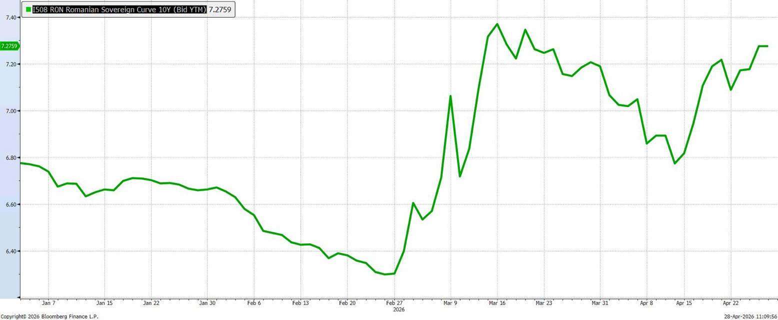 „O evoluție recentă relevantă este cea a diferenței între randamentele aferente maturității de 10 ani pentru titlurile de stat emise în moneda locală de Ungaria şi România: dacă la începutul anului România se situa sub Ungaria, acum plăteşte 120 puncte de bază (1,20%) peste Ungaria. România se împrumută practic mai scump decât Ungaria pe termen lung, investitorii cerând o dobândă mai mare pentru a compensa riscul perceput.