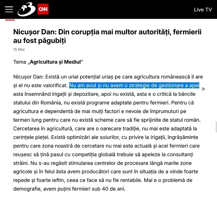 „Nu există programe adaptate pentru fermieri”, a mai spus Nicușor Dan. Președintele pare a fi la curent cu palierele care nu au o strategie bine conturată în Românie, însă totul rămâne la nivel declarativ.