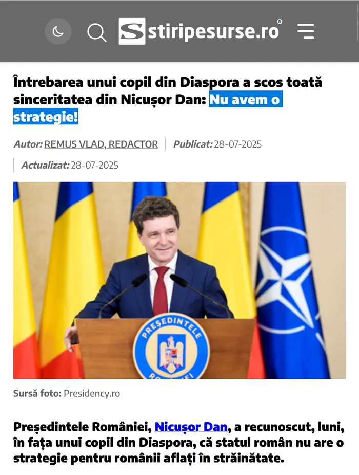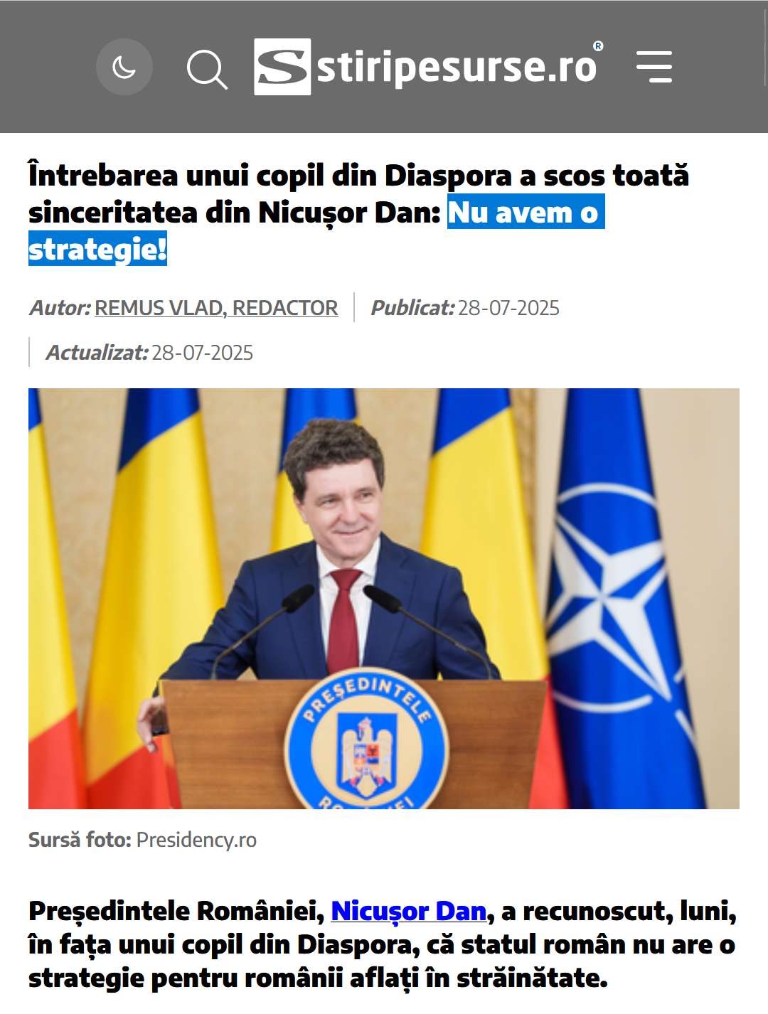 „Linia” prezidențială a fost aceeași, astfel că românii au aflat că nu există o strategie nici pentru cei din Diaspora, după ce „strategiile” pentru droguri, sănătate și Roșia Montană lipsesc cu desăvârșire.