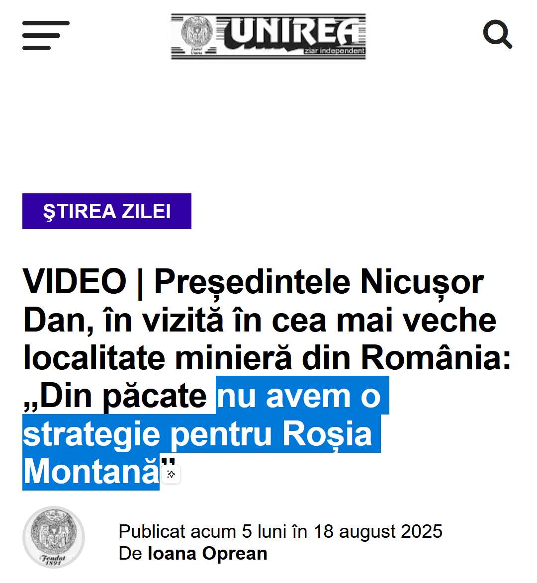 În luna august a anului trecut, Nicușor Dan s-a aflat în vacanță. Alături de familie, a ajuns și Roșia Montană. Președintele a recunoscut, din nou, că nu există o „strategie”, însă a uitat ca prin minune că a fost considerat, de mulți ani, unul dintre principalii vinovați pentru dezastrul de la Roșia Montană.