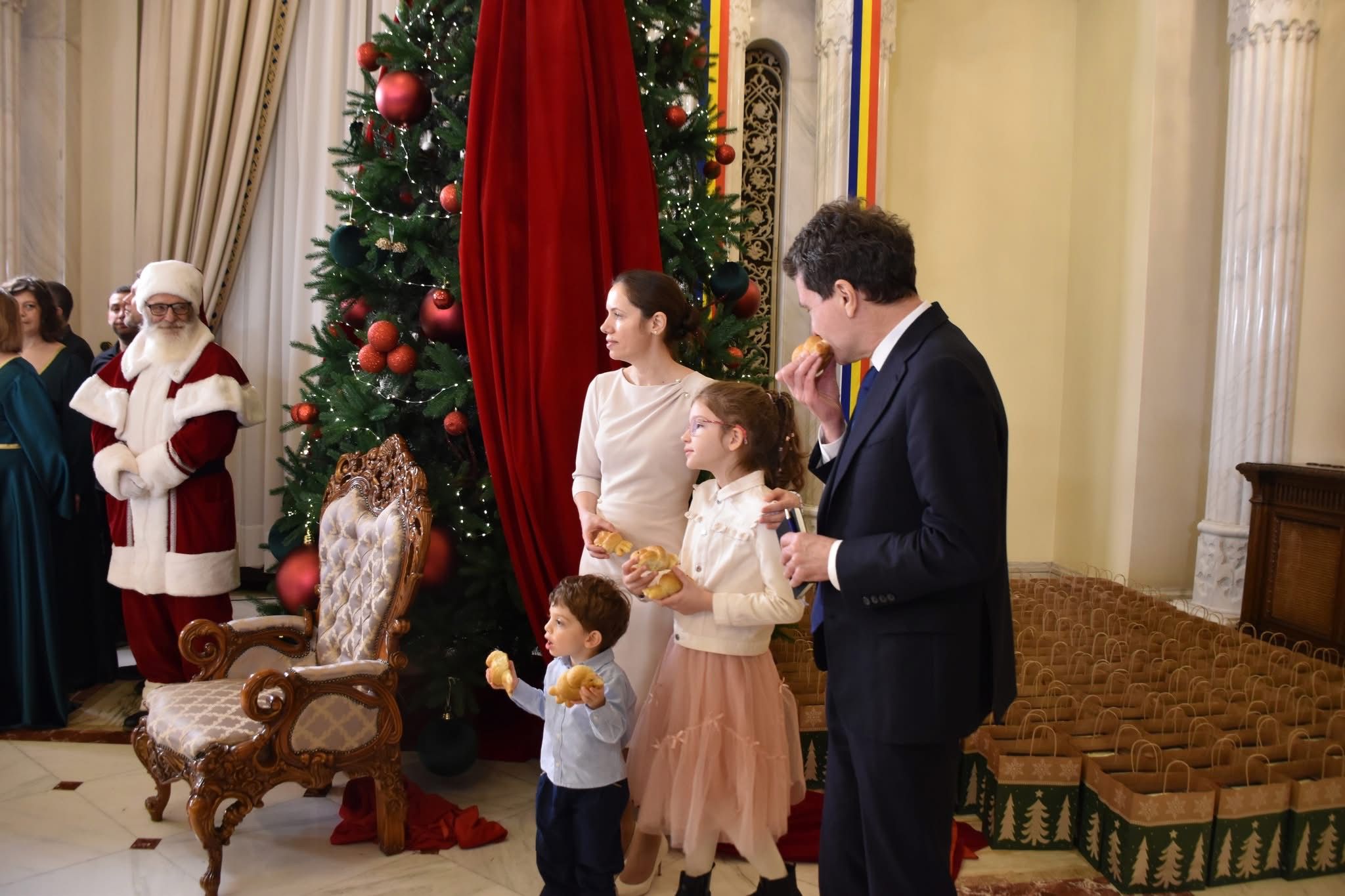 Nicușor Dan, Mirabela Grădinaru și cei doi copii l-au primit pe Moș Crăciun la Palatul Cotroceni. Nu au lipsit colindatorii și bucatele tradiționale. Nicușor nu s-a putut abține și s-a pus pe degustat colăcei