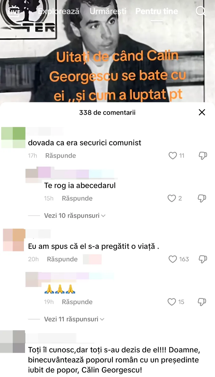 Un comentariu mai aprig subliniază că noile informații despre Călin Georgescu reprezintă „dovada că era un securist comunist”. Altul a remarcat: „Eu am spus că el s-a pregătit o viață întreagă”.