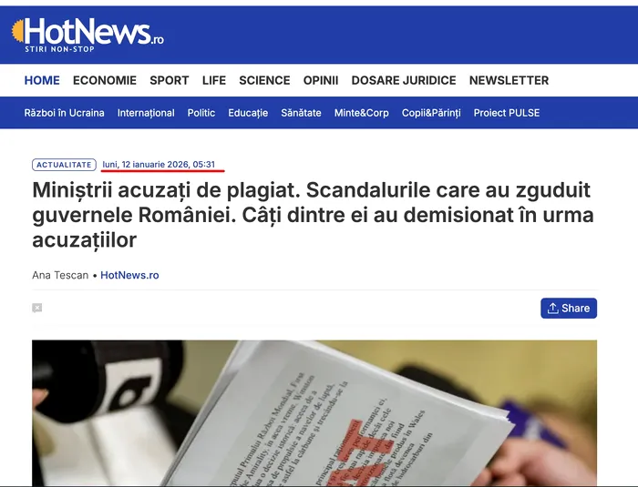 La ora 5:10 AM, Hotnews preia dezvăluirea făcută PressOne și publică un prim articol pe această temă. Ora este vizibilă în a doua captură, articolul îl găsiți aici: https://bit.ly/4psSFaR