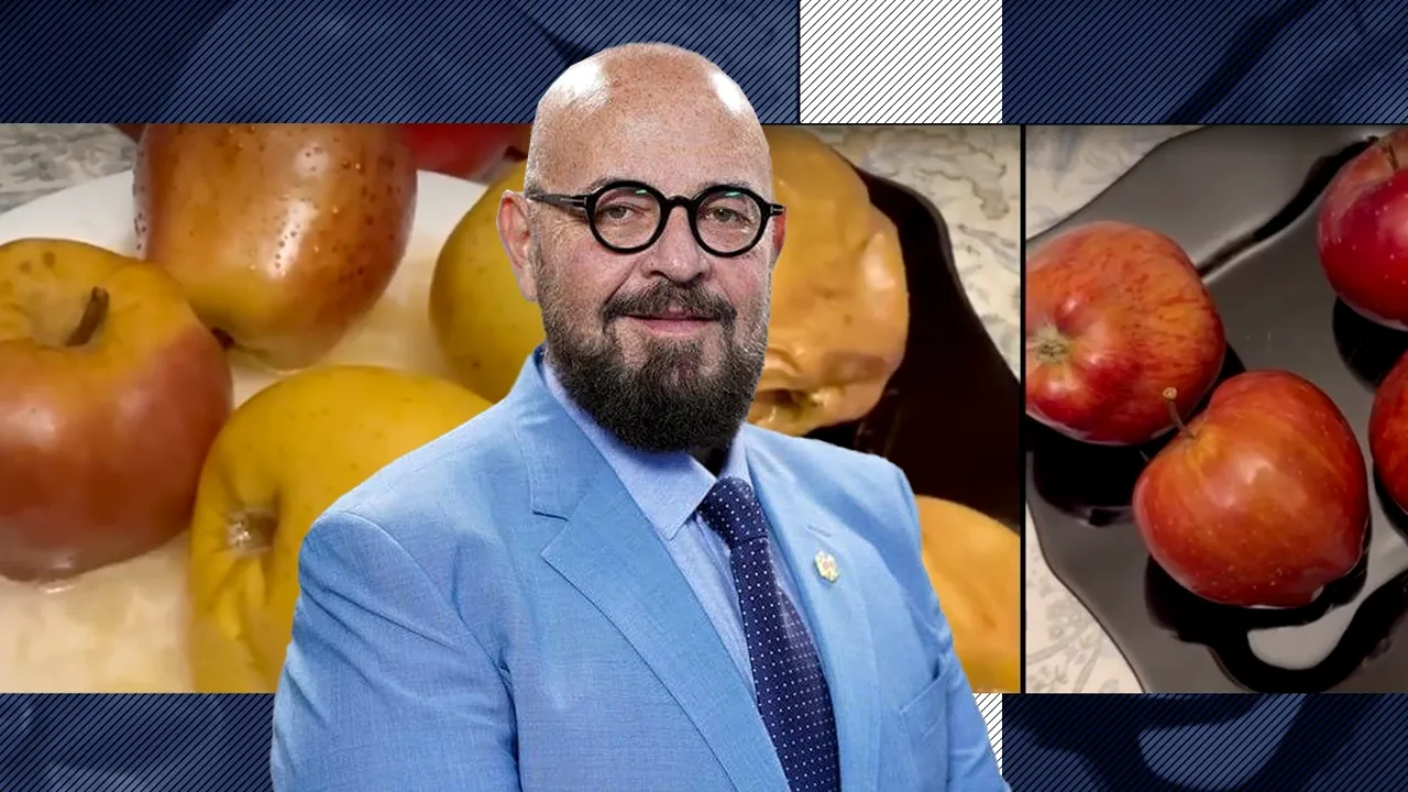 „Culoarea a dispărut. Și rămâne ceara. Rămâne colorantul. Mere Ungaria. Aceste mere sunt efectiv stropite cu colorant și date cu ceară”, a fost concluzia lui Piedone, în timp ce din tava scoasă din cuptor curgea ceara topită de pe mere.