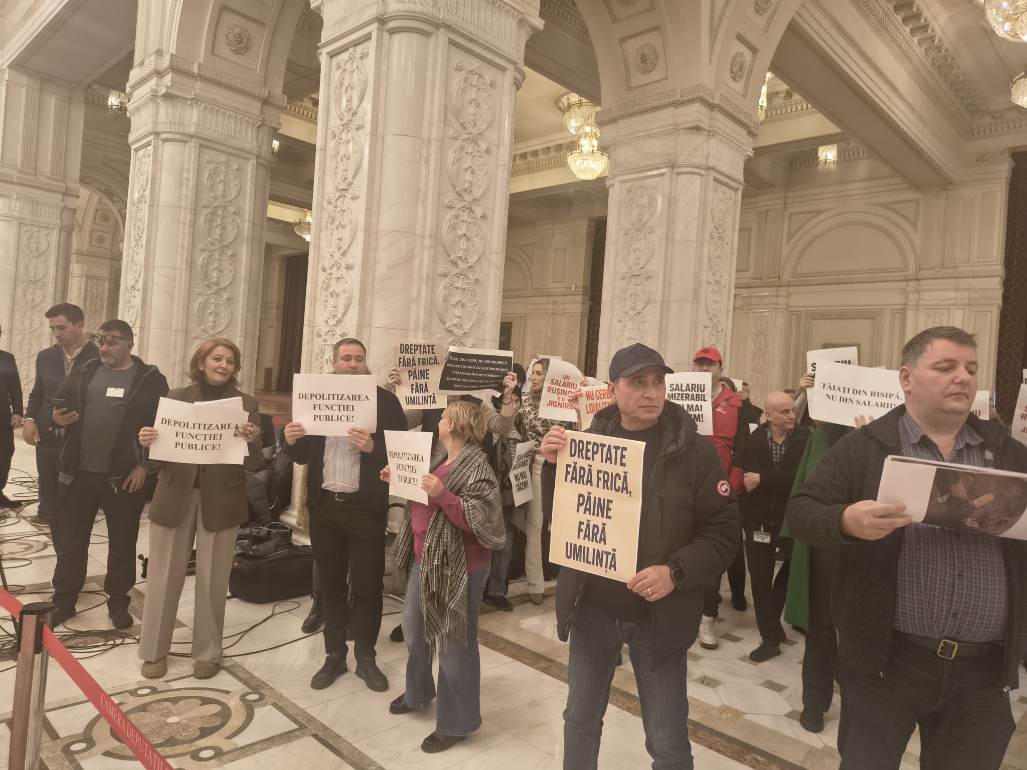 Premierul este așteptat să vină în Parlament cu un protest al angajaților Camerei Deputaților, care amenință cu greva. Ei protestează împotriva reformei administrației centrale, care prevede reduceri de personal și de salarii. Bugetarii țin în mână pancarte pe care scrie: „Nu cereți loialitate unde dați dispreț!”, „Guvernul a promis, apoi s-a dezis”, „Tăiați din risipă, nu din salarii”, „Munca noastră ține statul în viață”. Câțiva dintre protestatari îi cer chiar și demisia premierului.