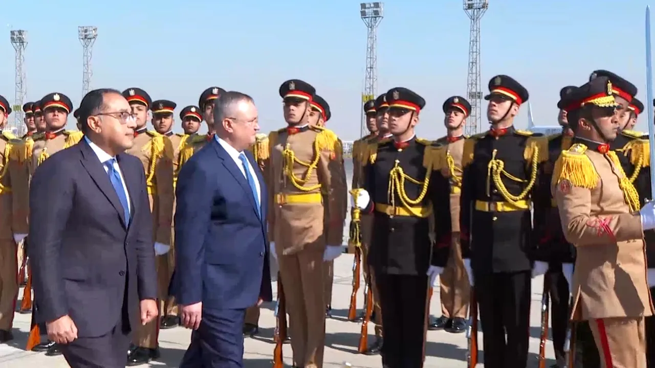 Premierul Nicolae Ciucă a fost întâmpinat, sâmbătă, cu onoruri militare, de către premierul Republicii Arabe Egipt, Mostafa Madbouly, pe aeroportul internaţional din Cairo. Cei doi oficiali au discutat despre relaţiile economice dintre cele două state. Mai exact, România solicită Egiptului îngrăşăminte, în timp ce Egiptul caută să importe mai multe cereale.