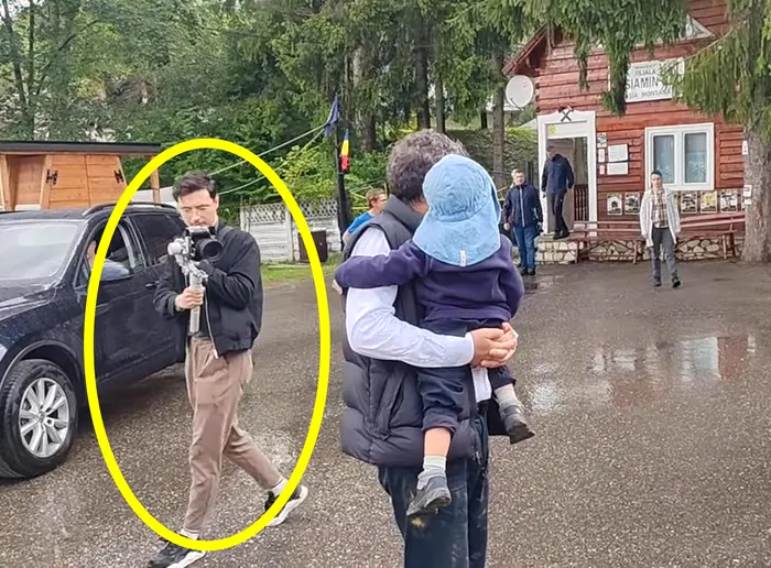 Pe imaginile analizate de Gândul se poate observa echipa de filmare a președintelui.