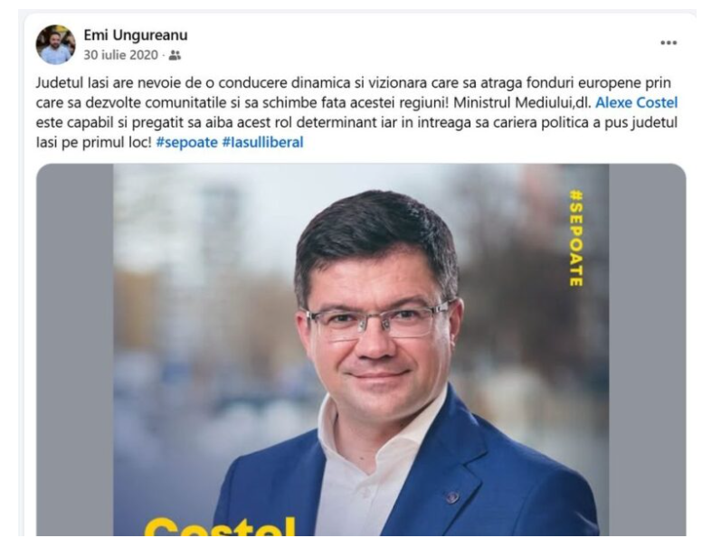 Emanuel Ungureanu, mesaj pe Facebook pro – Costel Alexe