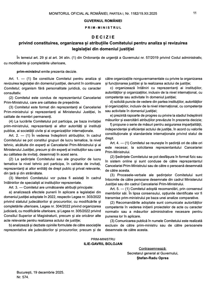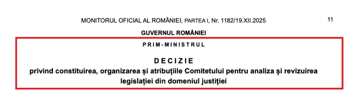 • Vineri – 19 decembrie 2025 – în Monitorul Oficial au fost publicat deciziile premierului de înființare a 3 grupuri de lucru, nu doar a grupului care ar trebui să analizeze legile justiției.