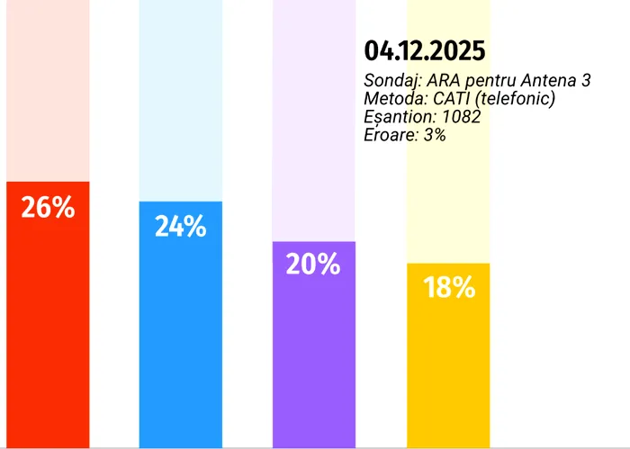 4 decembrie 2025. Sondajul ARA pentru Antena 3. Daniel Băluță „părea” câștigător, la mică distanță de Ciucu
