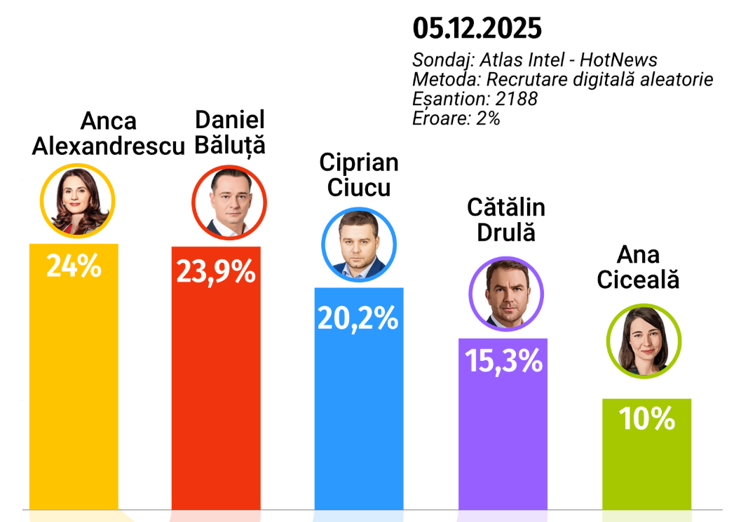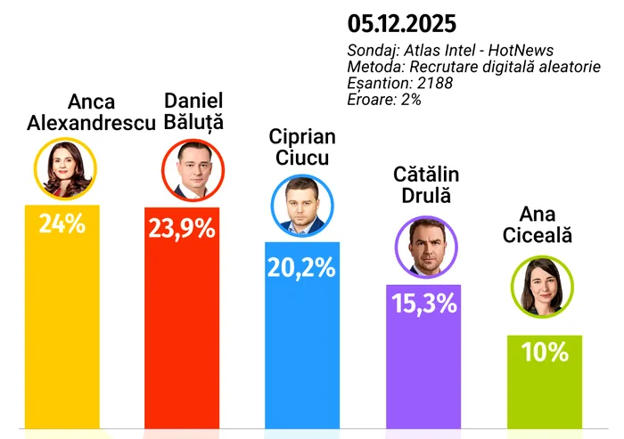 5 decembrie 2025. Sondajul Atlas Intel – Hotnews. Anca Alexandrescu era „anunțată” câștigătoare