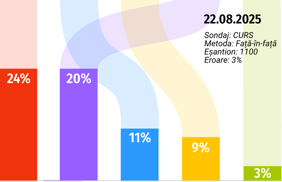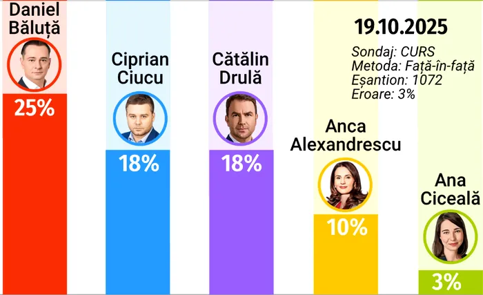 22 august 2025. Sondaj CURS realizat „față în față”. Daniel Băluță, lider absolut