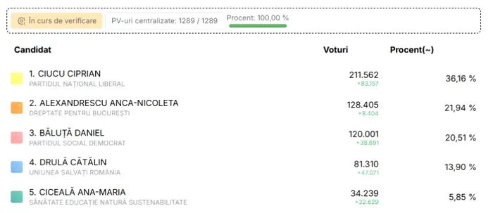 Totuși, Băluță și Ciucu apăreau cu același număr de procente și erau la egalitate.