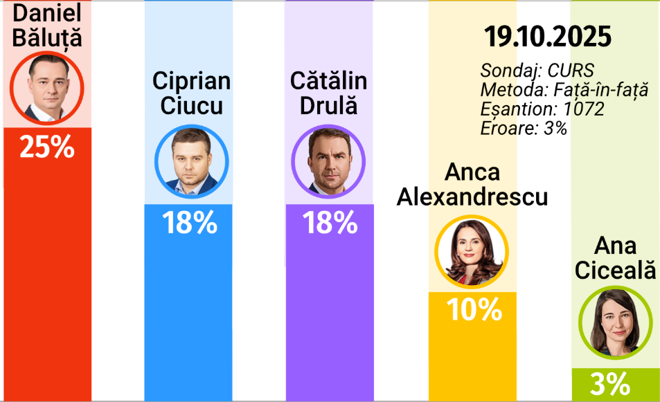 În data de 22 august 2025, Daniel Băluță era prezentat de CURS drept câștigător al alegerilor pentru PMB. Era urmat în previziuni de Cătălin Drulă, ceea ce a însemnat, finalmente, o eroare colosală.
