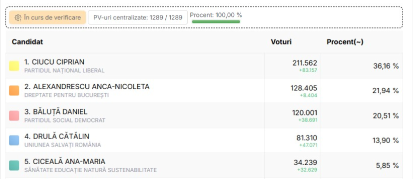 Alegerile pentru Primăria Capitalei – desfășurate duminică, 7 decembrie 2025 – l-au propulsat în funcția de primar general pe Ciprian Ciucu, susținut de PNL. Acesta a obținut 36,16% din voturi și a fost urmat de „surpriza serii”, Anca Alexandrescu, care a strâns 21,94% din voturile bucureștenilor. Susținător al lui Cătălin Drulă (locul 4, cu doar 13,90%), Nicușor Dan a suferit o înfrângere de proporții și a pierdut Capitala, iar social-democrații, care au mers pe „mâna” lui Daniel Băluță (20,51%, poziția a treia), au mai bifat un eșec, după cel înregistrat la prezidențiale.