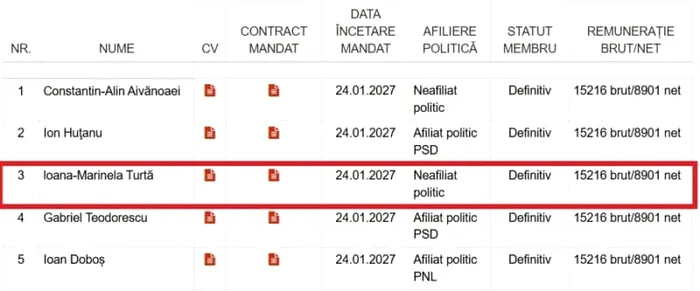 Ioana Turtă a fost angajată în Consiliul de Administrație (CA) al Servicii Publice (SPI) în ianuarie 2023. Din februarie și până în decembrie 2023, a avut o remunerație lunară de 10.080 lei brut, adică 5.896 lei net. Respectiv, din această componentă, secretara a încasat în 2023 suma de 66.331 lei net. Pentru că SPI și-a îndeplinit indicatorii de performanță, în aprilie 2024, membii CA au fost recompensați, fiecare, cu încă 8 indemnizații fixe, adică au mai primit net încă 44.226 lei.