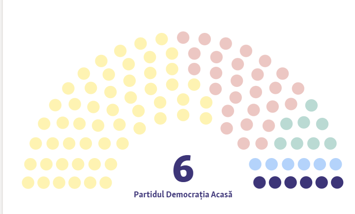 Partidul Nostru și Partidul Democrația Acasă ar lua câte 6 mandate.