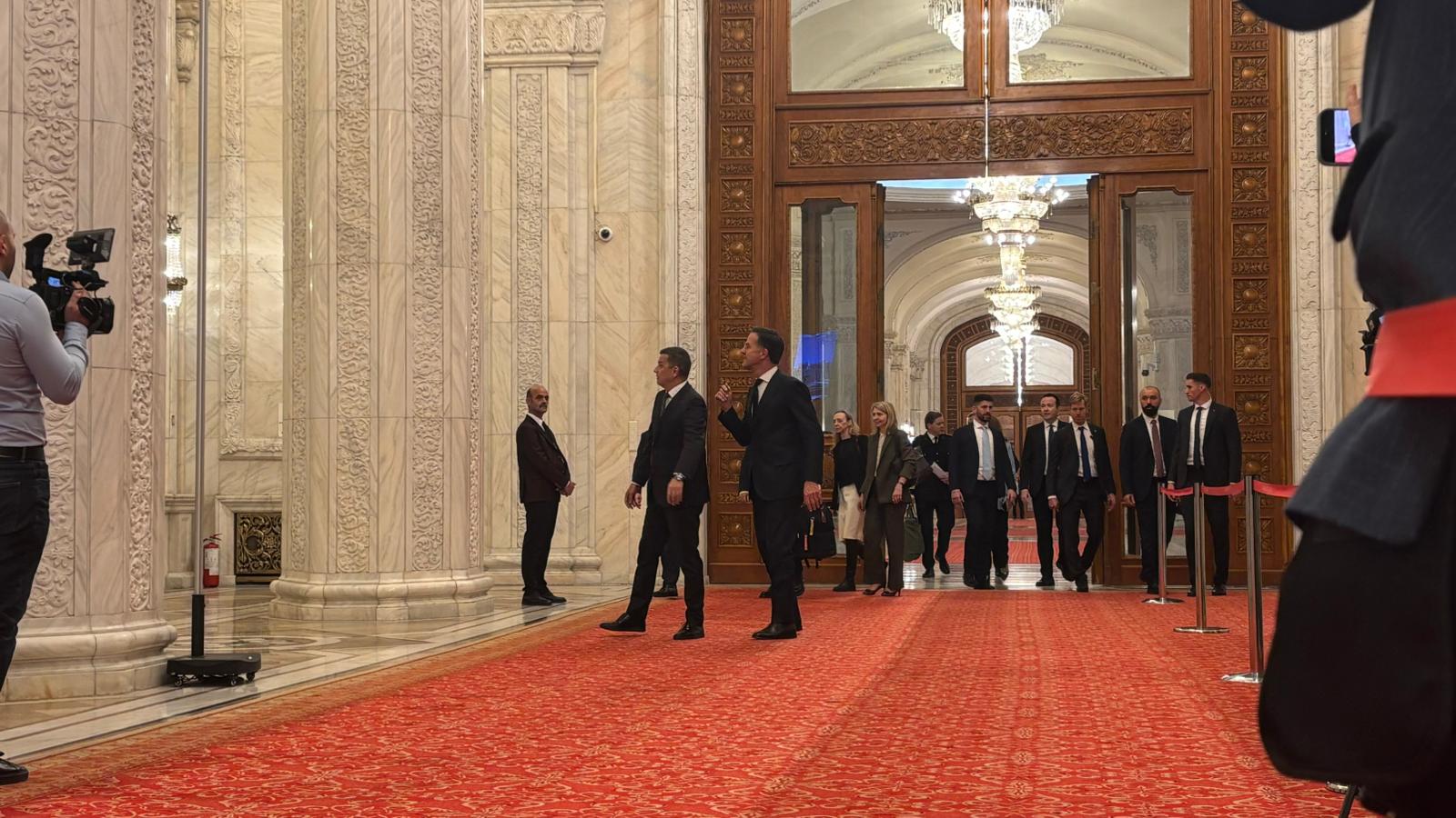 Șeful NATO a ajuns la Parlament, după o ședere de mai puțin de 30 de minute la Guvern alături de Ilie Bolojan.