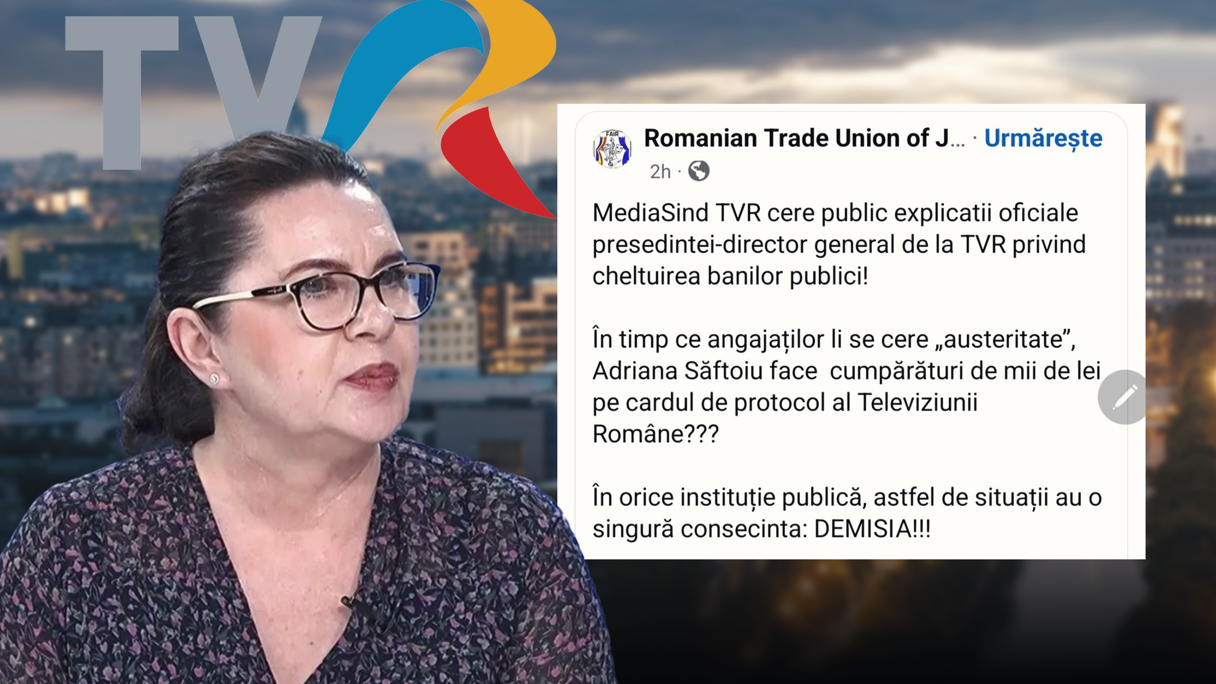 Adriana Săftoiu a fost numită la conducerea TVR în Noiembrie 2025. De la preluarea mandatului s-a plâns public de greaua moștenire a vechiului PDG, Dan Turturică, de cheltuielile angajate de acesta și de situația critica în care se afla Finanțele instituției.