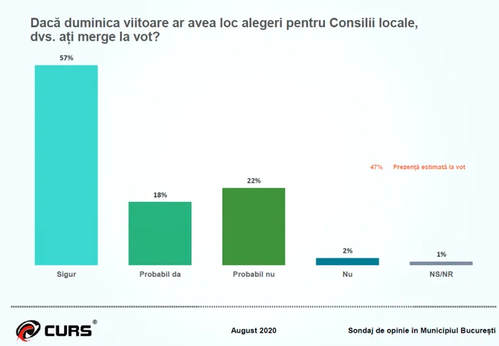 În cazul în care alegerile pentru Consiliile locale ar avea loc peste o săptămână, este preconizată o prezența la vot de 47 %, potrivit sondajului realizat de CURS.
