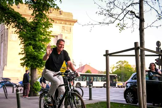 Iată-l în acest video la o plimbare, alături de vicepremierul Tanczos Barna, un adevărat sportiv, şi Steven van Groningen, directorul general al Raiffeisen România, de Ziua Bicicletei, pe vremea când Nicuşor Dan era primarul general al Bucureştiului.