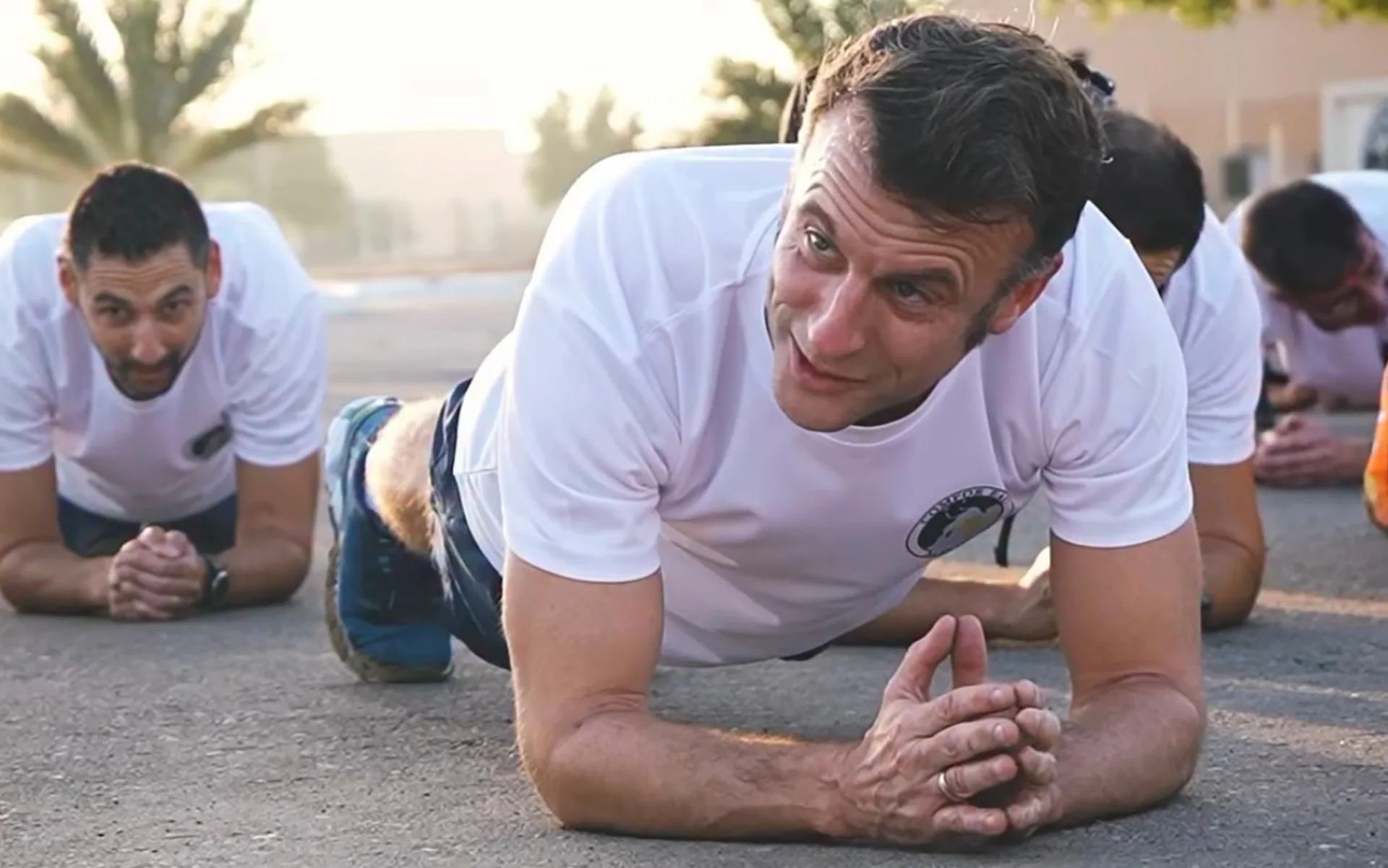 Macron a postat recent pe Instagram câteva video-uri în care se antrena cu soldaţii francezi, iar în trecut nu s-a sfiit să publice fotografii din timpul antrenamentului la box.
