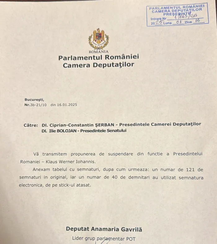 Astfel, toți parlamentarii AUR și POT au semnat pentru suspendarea lui Iohannis, alături de 39 de parlamentari de la SOS, mai transmit aceștia.