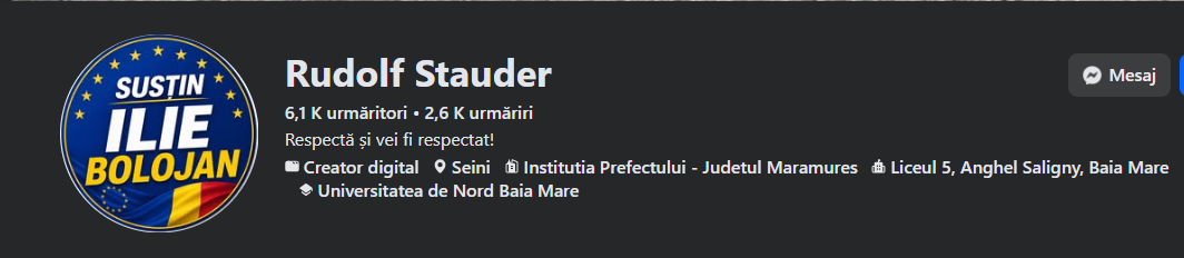 În prezent, acesta este fanul premierului Bolojan, având în vedere că la poza de profil de pe Facebook, Stauder și-a pus imaginea campaniei împotriva moțiunii de demitere a șefului Executivului „Susțin Ilie Bolojan”,