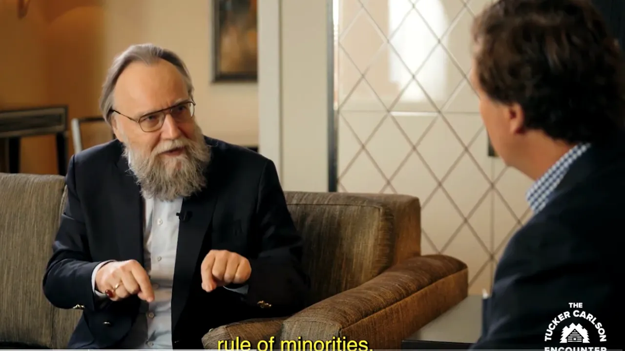 Jurnalistul american Tucker Carlson l-a intervievat pe filozoful rus Aleksandr Dughin, supranumit „creierul lui Putin”. Conversația a durat 20 de minute și clipul este disponibil pe contul lui Carlson de pe X.