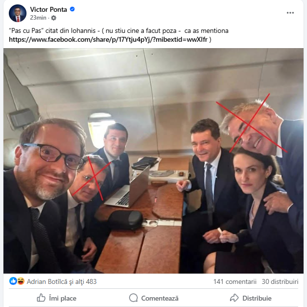 Ponta a postat o imagine pe pagina sa de Facebook în care apare președintele Nicușor Dan, alături de mai mulți lideri USR. Poza apare modificată, doi foști vicepremieri sunt taiați din imagine, ambii fiind implicați în controverse. Este vorba de Ionuț Moșteanu, care a demisionat din funcția de ministru al Apărării, în urma scandalului apărut pe tema studiilor sale, și despre Dragoș Anastasiu, care a demisionat din funcția de vicepremier al cabinetului Bolojan, după scandalul privind mita oferită, timp de opt ani, unei funcționare ANAF, deja condamnată la închisoare.
