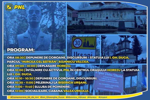 „A devenit o tradiție organizarea de către liberalii vâlceni a unor manifestări omagiale pentru fostul prim-ministru și președinte liberal, I. Gh. Duca, în ziua de 29 decembrie (ziua în care, în 1933, a fost asasinat de către legionari) la Urșani-Horezu. Patriot român și liberal de marcă încă din tinerețe, I. Gh. Duca și-a legat nu numai activitatea politică de circumscripția vâlceană în care a fost ales, ci și viața personală cumpărând proprietăți la #Măldărești și făcând numeroase danii cu caracter caritabil”, au transmis liberalii din Vâlcea.
