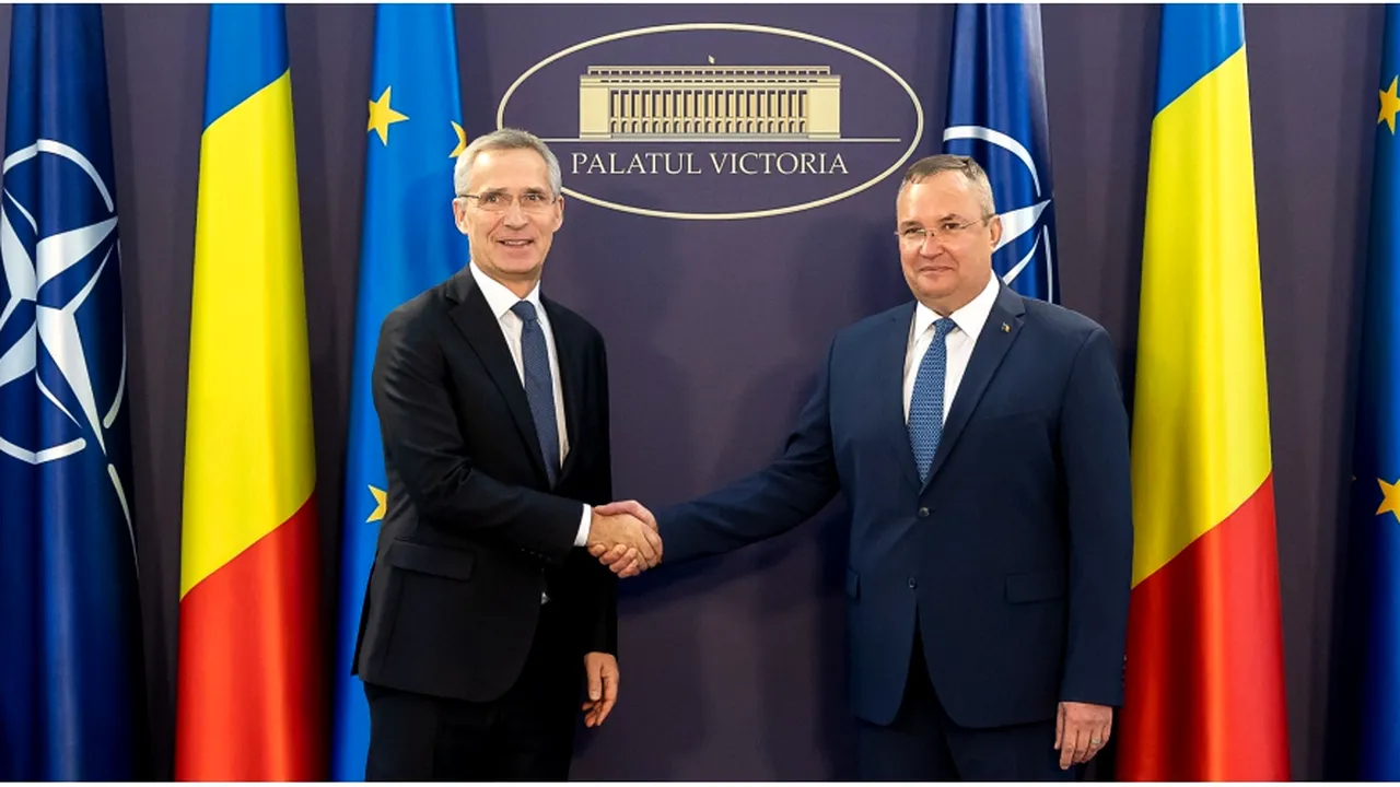 Nicolae Ciucă şi ministrul Apărării, Angel Tîlvăr, i-au întâmpinat, luni, la Palatul Victoria, pe Jens Stoltenberg, secretarul general NATO, dar și pe Mircea Geoană, secretarul general adjunct NATO.