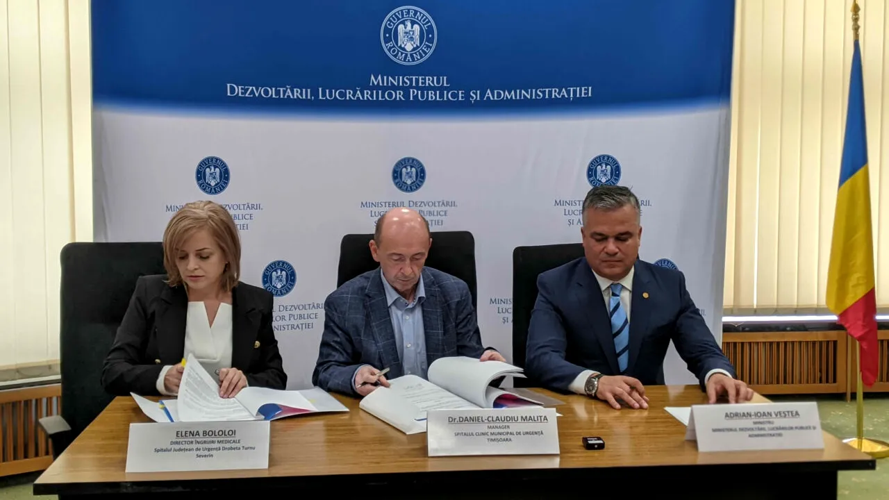 Ministrul Dezvoltării Adrian Veștea și Daniel-Claudiu Maliţa, managerul Spitalului Clinic Municipal de Urgență Timișoara, au semnat, luni, contractul de finanțare pentru proiectul „Together we can beat cancer”, finanțat prin Programul Interreg IPA România – Serbia 2021-2027.