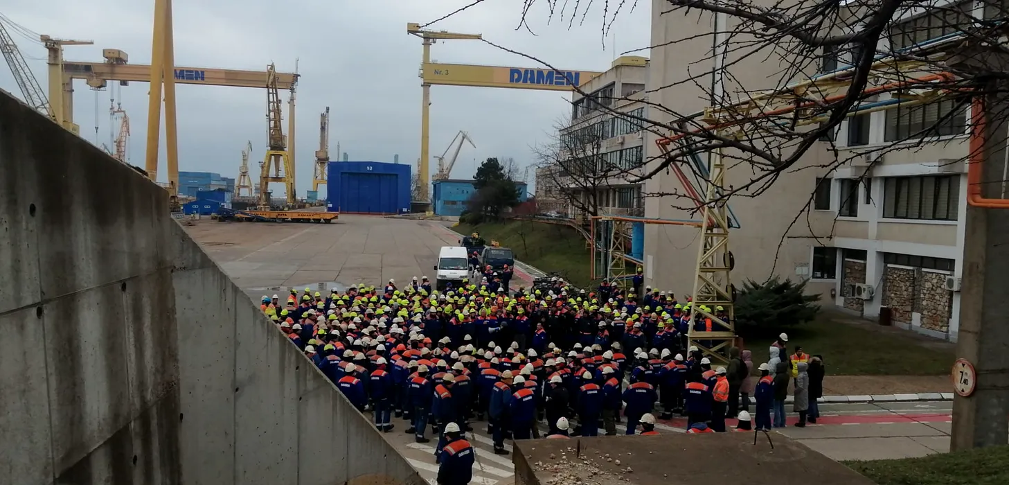 Revoltă la Mangalia pentru salariile promise de Radu Miruţă. Luni, angajaţii şantierului naval din Mangalia încearcă şi la ministrul Irineu Darău