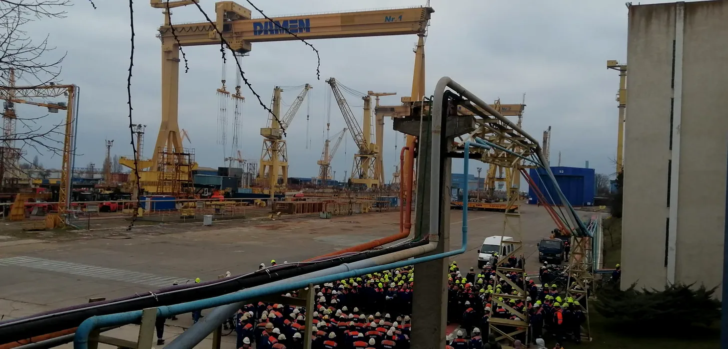 Revoltă la Mangalia pentru salariile promise de Radu Miruţă. Luni, angajaţii şantierului naval din Mangalia încearcă şi la ministrul Irineu Darău