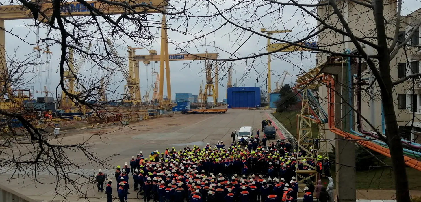 Revoltă la Mangalia pentru salariile promise de Radu Miruţă. Luni, angajaţii şantierului naval din Mangalia încearcă şi la ministrul Irineu Darău