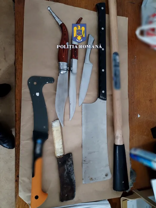 11 bărbați, reținuți, în Teleorman, după ce s-a descoperit la domiciliile lor un adevărat arsenal de arme albe